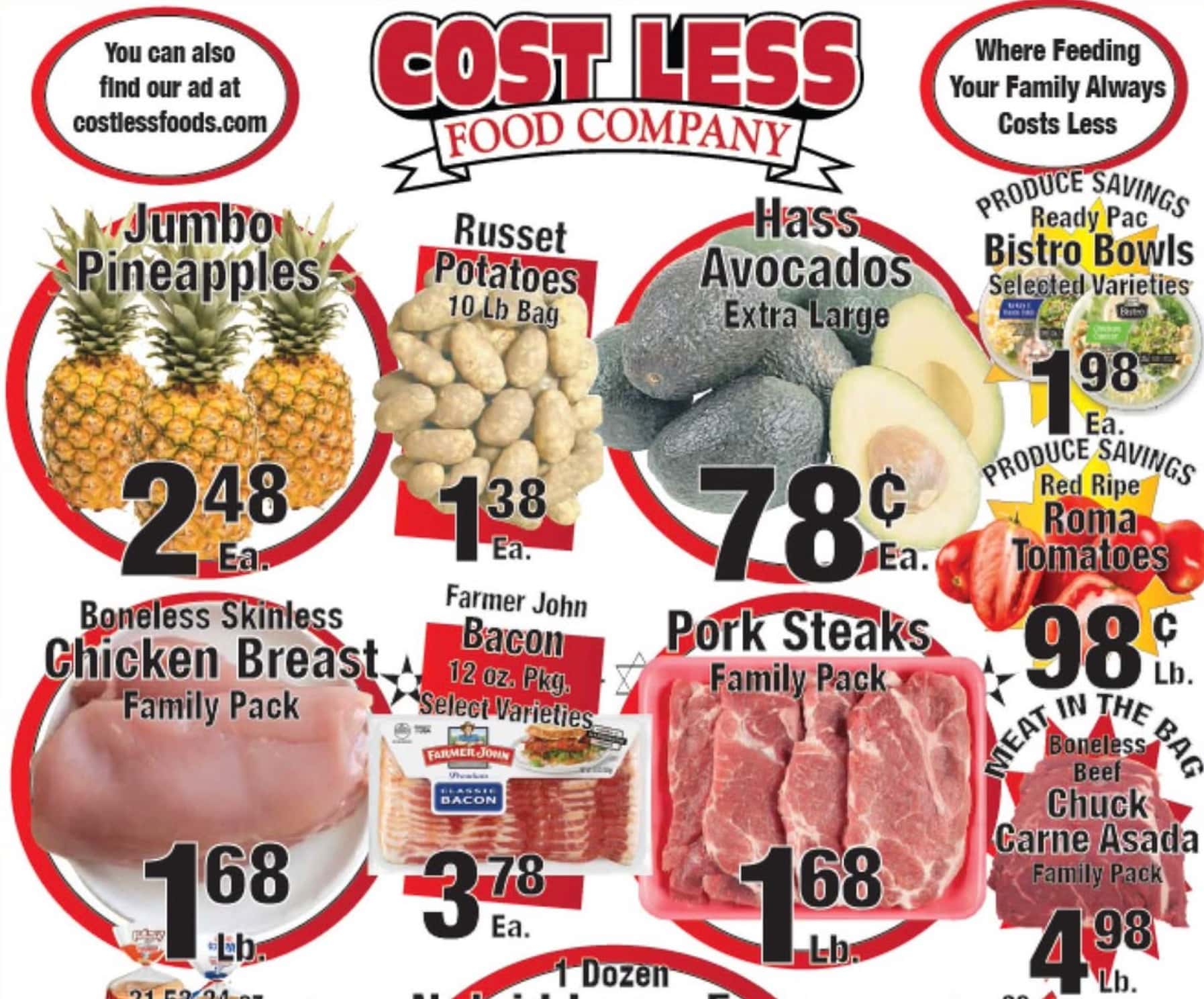 Bookmark this page and check back regularly to stay updated on all the newest deals and specials from Cost Less Food.