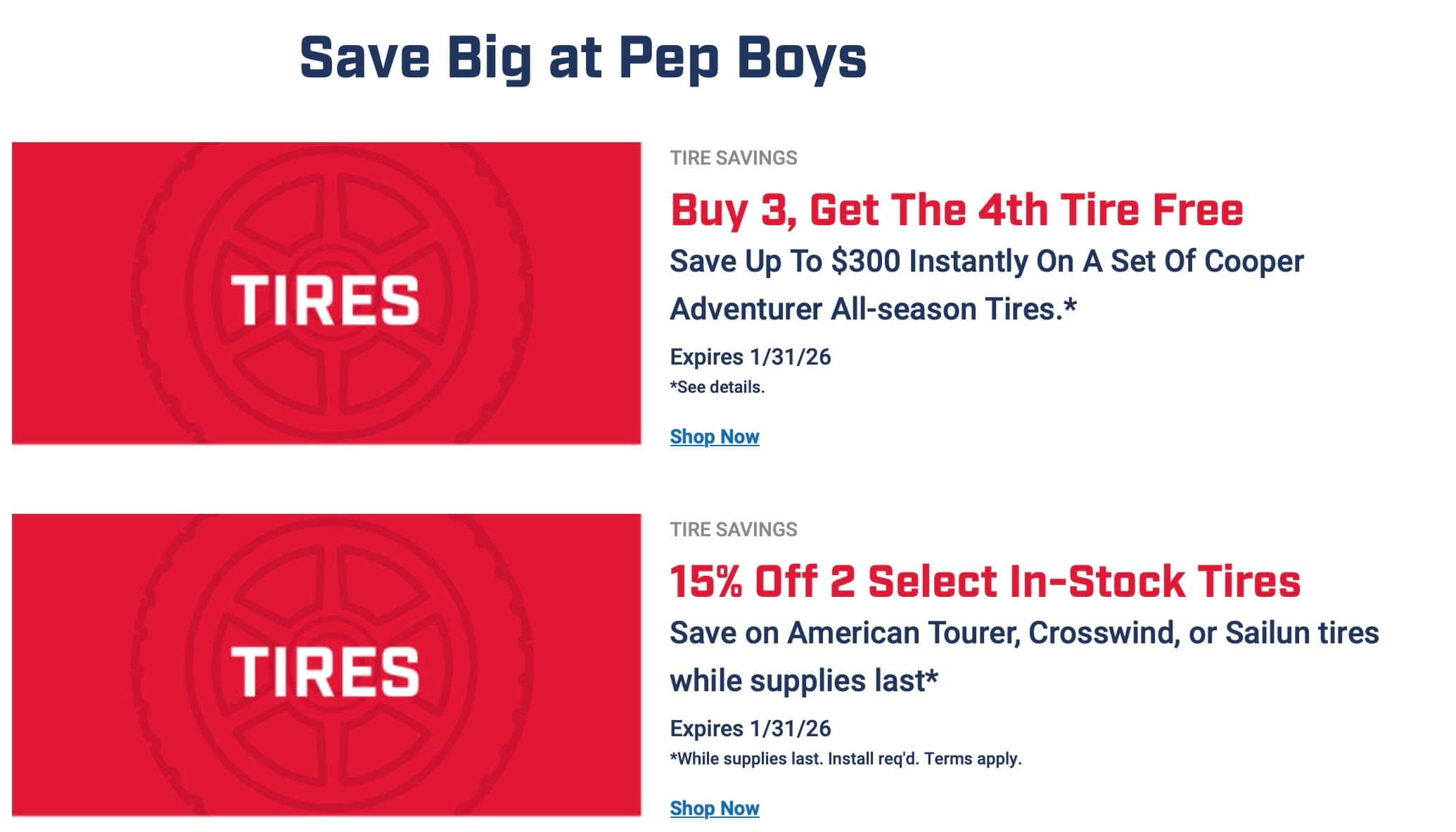 Save big by checking out the Pep Boys February Weekly Ad [2/1/26] and discover all the hottest discounts and special offers waiting for you. Don’t miss out on the incredible deals in the Pep Boys February weekly flyer — your go-to source for smart shopping and big savings!